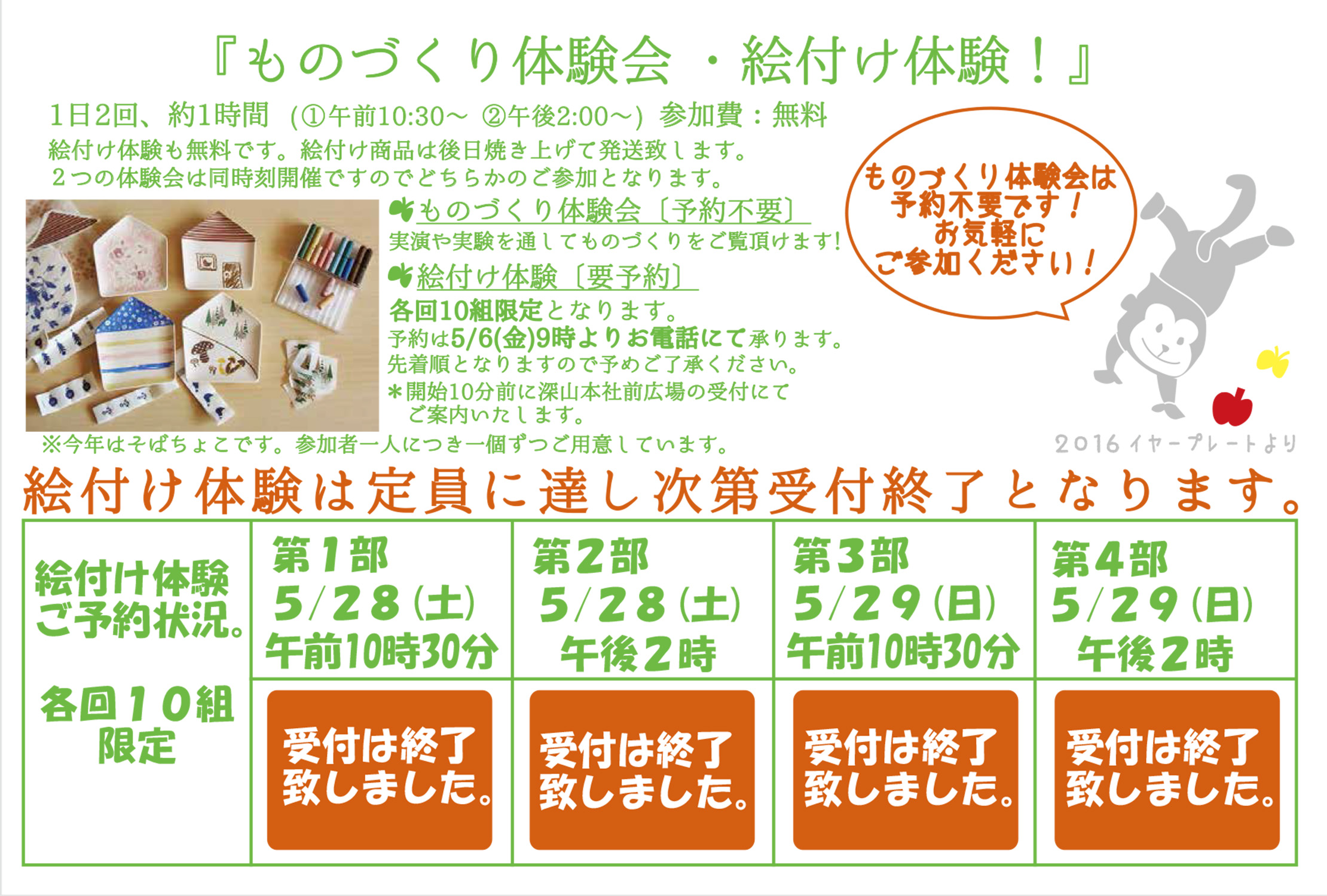 2016感謝祭「絵付け体験」予約定員いっぱいになりました。