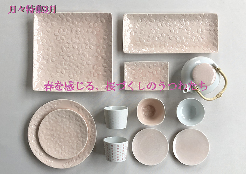 レリーフや絵付けで桜を表した気持ちも和む春の器をご紹介しています。